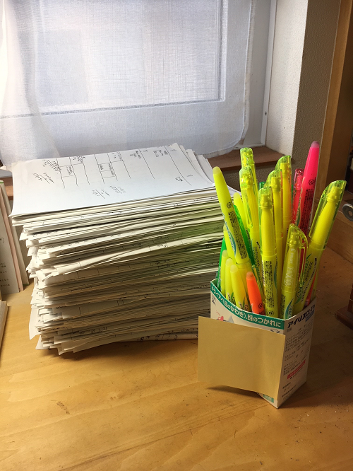 今までやってきた答案構成の束。