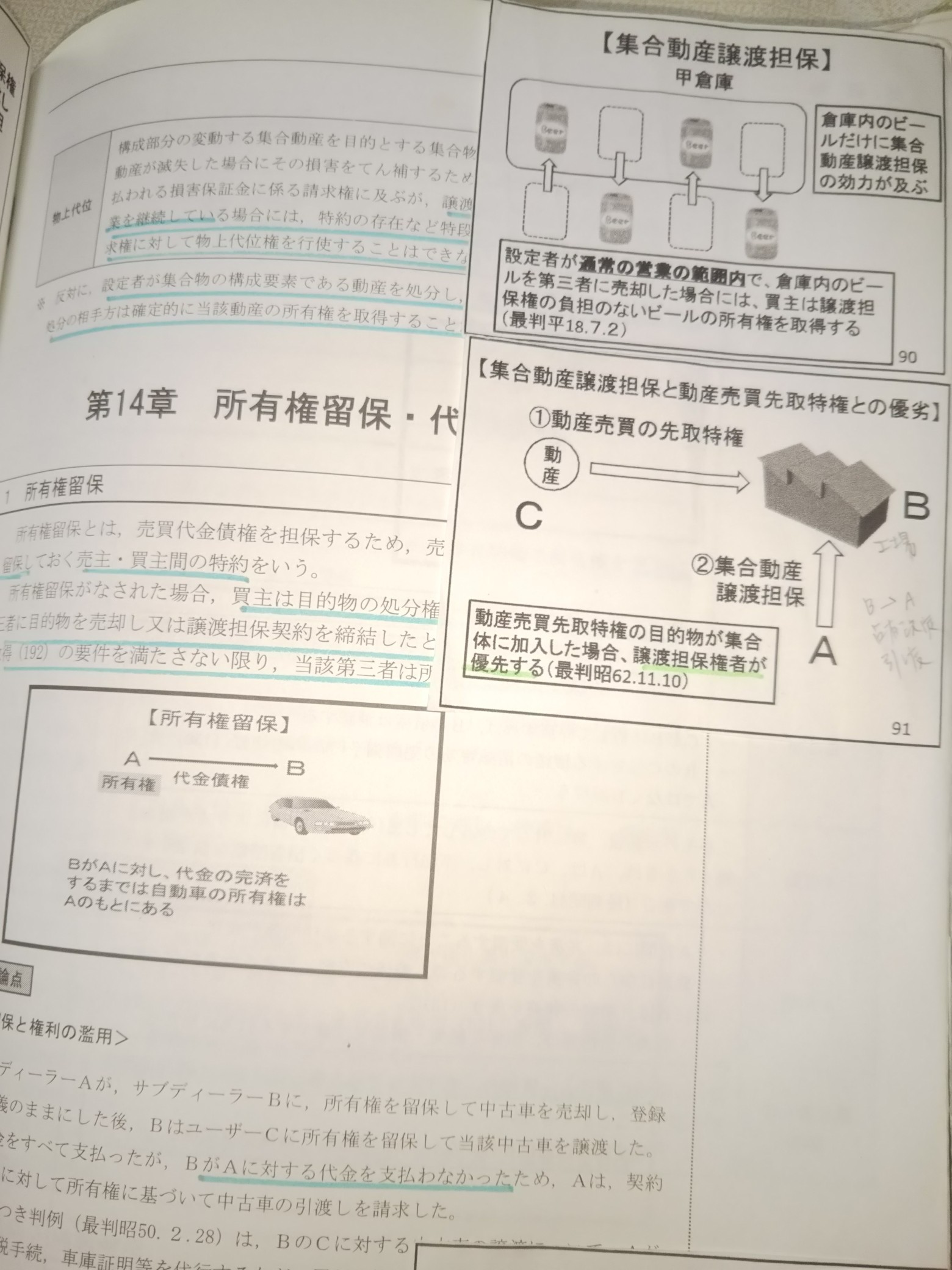 7月末からアドバンス講座が始まり、配信予定スケジュールに遅れないように視聴するよう心がけました。「アドバンス講座」のテキストは入門講座よりコンパクトで図表中心ですが、適宜説明文もあり大変読みやすいものでした。特に民法は項目ごとに改正のポイントが簡潔にまとめられており、私たち旧民法に馴染んだベテラン受験生にとっては、変更なのか判例の明文化なのか一目でわかるように工夫されていました。講座の中で宇津木講師はとにかくテキストを読み込み、繰り返すことを力説されており、重要なもの、対比となるもの、暗記の必要なものと色分けして講義中に「マークしましょう」と呼びかけていました。色分けのマークは理解を助けるとともに、学習の絞り込みの必要な直前期にとても有効でした。