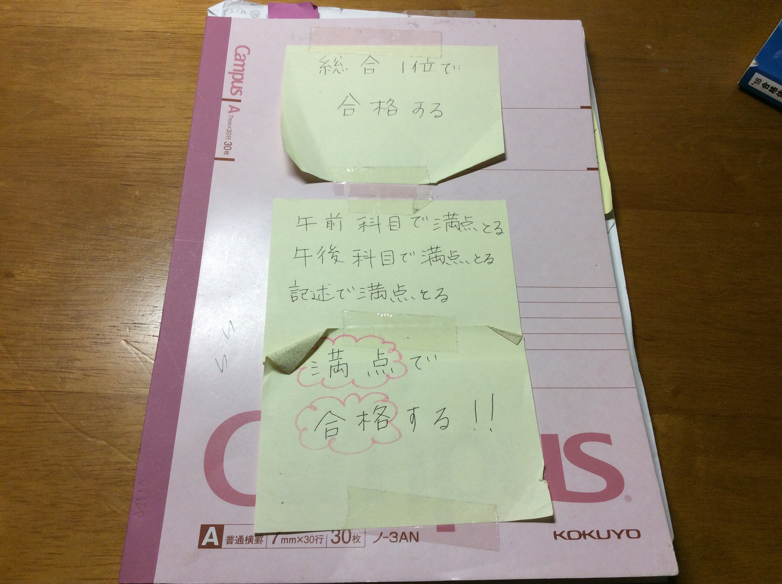 記述 間違いノートを作り、よく間違える論点をまとめました。本試験当日はその表紙に、普段は机周りの壁に貼っていたポストイットを貼り付けて持って行きました。