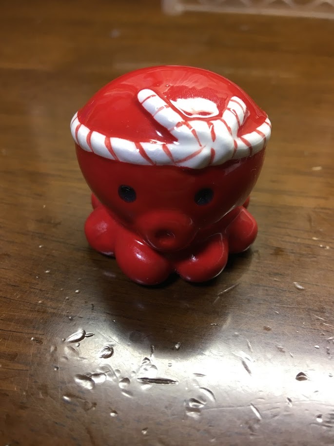 南三陸復興ダコの会が販売しているオクトパス君の陶器の置物です。登記が関係する試験で置くと試験にパスするという願掛けです。勉強机の前に置いてモチベーションを維持することができました。願掛けをすることも意外と大事だと思います。
