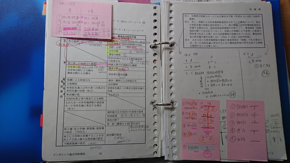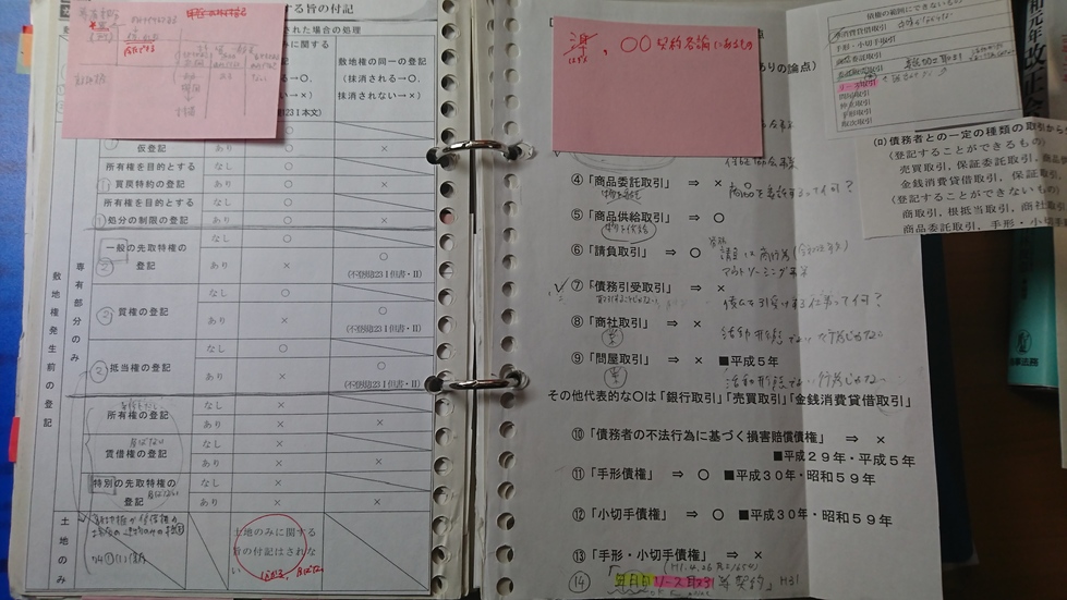 そこで役立ったのが、日頃の学習の際に、よく出る基礎知識及び直前期に確認したい知識に絞って、テキストにある比較図表をピックアップし、まとめノートとしてつくっておくことでした。
