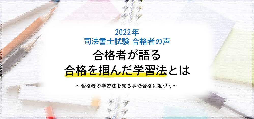 司法書士試験の勉強をする中で私が一番重要だったなと思うのは、一冊の本をやりきるということです。試験範囲が膨大なためいろいろな書籍に手を出していては中途半端になってしまうと思ったからです。また、速く回転させるということも意識していました。この試験は頭の良さというよりもどれだけやりこんだかということが重要であり、そのために早く回転させることが大切だと考えていたためです。結果として合格までに3回掛かってしまいましたが、着実にこの勉強法で伸びていったような気がします。