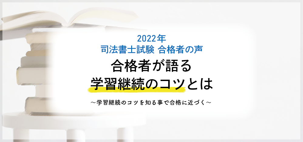 コロナ渦に入り、自分と向き合う時間が増え、司法書士試験に真正面から向き合っていない自分に気づき、試験を突破するために生活の全てを犠牲にして、「働きながらなので2~3年で」という無理のない学習ペースで目標を立てられたことが大きかったと思います。