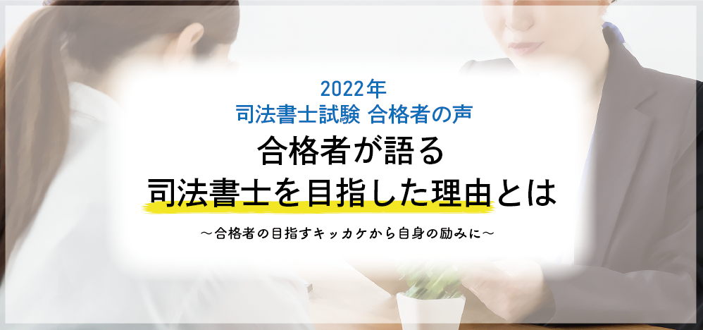 私は、10年程前、大学生だった頃にも一度司法書士試験の学習をしておりました。その時は、合格点に6点ほど足りずに不合格となってしまいましたが、最後の受験と決めていたため、そこですっぱり受験を辞めていました。現在、一般企業で法務の仕事をしており、2年前の行政書士試験合格をきっかけに、過去に諦めずっと心のどこかに引っかかっていた司法書士試験受験を決意しました。