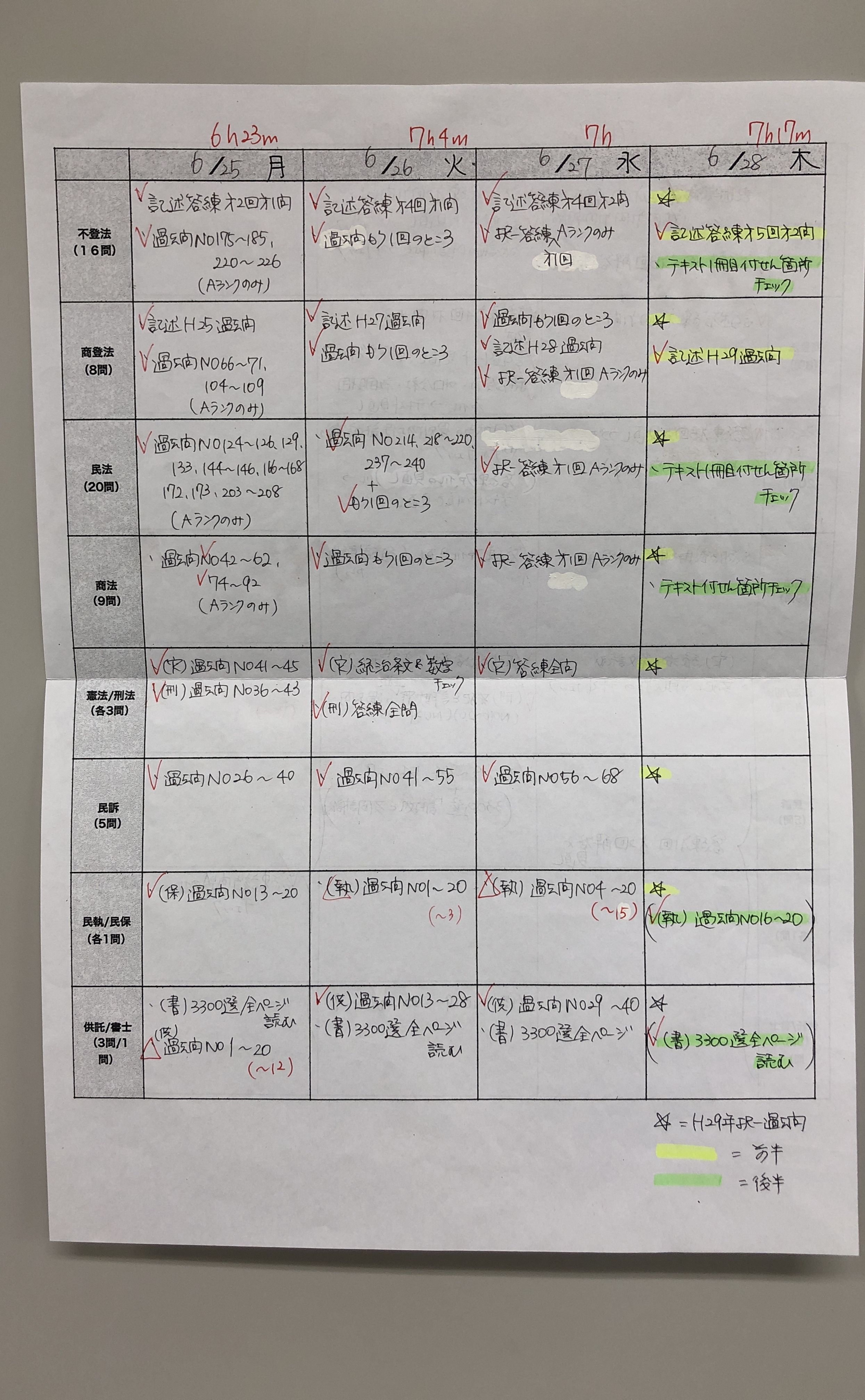 子どもを生んで以来、自分の時間は以前と比べてずっと少なくなっていたこともあり、自分のために勉強できること自体がとてもありがたく、充実した毎日でした。それでも勉強時間は娘が幼稚園に行っている間と寝た後しか集中してとれません。講義の中で可処分時間を把握するように指示があり、計算してみると、無駄な時間はほぼありませんでした。ならば、いま必要だと思っている時間を圧縮するしかない、と考え家事の時短を徹底的に検討しました。たとえば、買い物の時間を節約しネットスーパーを活用するなど家事時間の節約をしました。タイムマネジメントや、時間を生み出す方法なども勉強し、効率化を検討しました。このようにして実際に有効な時間ができると楽しくなり、自分で工夫をしたことが自分にかえってくるので、ますます時間の節約を工夫しました。また合格体験記で主婦の方やフルタイムの方が1回の受験で合格していることを知り、私も有効な時間を確保することによって1回で合格することも夢ではないと思いました。