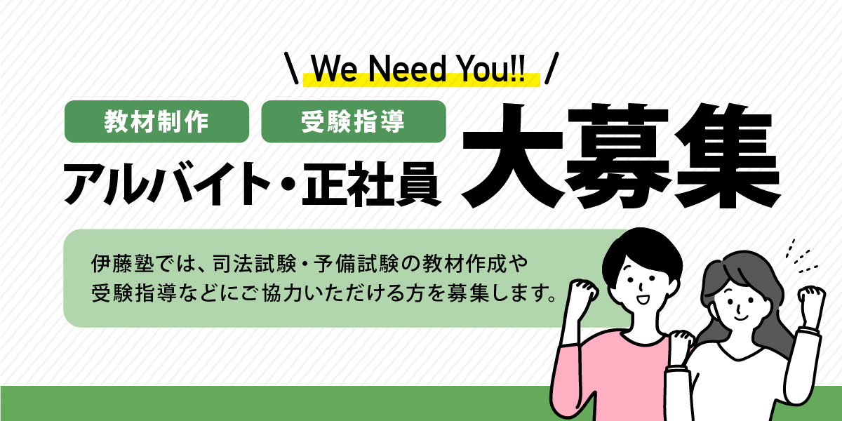 また伊藤塾の司法試験・予備試験関連講座の教材制作にあたり、制作スケジュールや合格者スタッフのマネジメントをお任せする「司法試験教務系総合職」の募集も行っております。