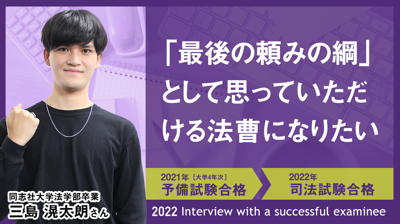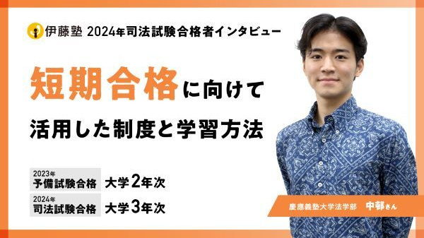 司法試験合格者インタビュー 大学在学中や社会人以降、様々な学習開始時期の合格者へのインタビュー。法曹を目指したきっかけ、課外活動や仕事との両立などについて伺いました。 最新!2025年合格者 司法試験合格発表特集はこちら 2024年合格者 インタビューに答えてくれた合格者も受講した 司法試験入門講座についてはこちら ▼インタビュー年度別一覧 最新| 2023年| 2022年| 2021年・2020年| 2019年・2018年| 2017年