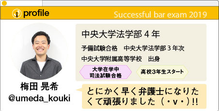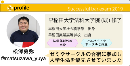 予備試験直前期まではサークルやアルバイトなど大学生活も充実させながら試験に挑戦!
