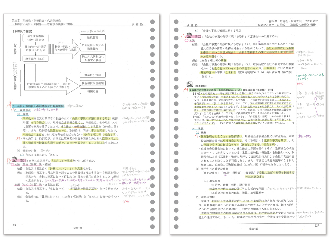 の実務的観点からの評価の仕方を学習します。論文の型とは、試験傾向、出題形式、判例を踏まえ、過去の膨大な再現答案から分析を重ねて構築した伊藤塾オリジナルのものであり、開塾当初から多数の合格者を輩出している伊藤塾だから提示できるものです。
