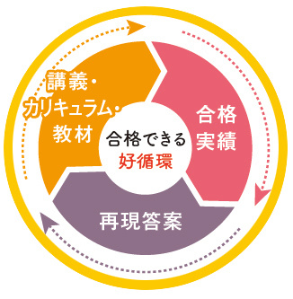 伊藤塾は開塾以来、圧倒的な合格実績を維持してきました。それは同時に、伊藤塾には30年間蓄積し続けてきた膨大な合格者の「再現答案」データがあることを意味します。それらのデータを徹底的に分析し、次世代のカリキュラムに反映させる。そのカリキュラムと効果的に指導する講師陣の力との相乗作用が、また新たな多くの合格者を生む。そして、新しい合格者がまた新たな再現答案の要素を加えることで、伊藤塾だけの"合格できる"好循環が生まれるのです。「合格実績が、次世代の合格実績を作る」。これが伊藤塾の強みの一つです。