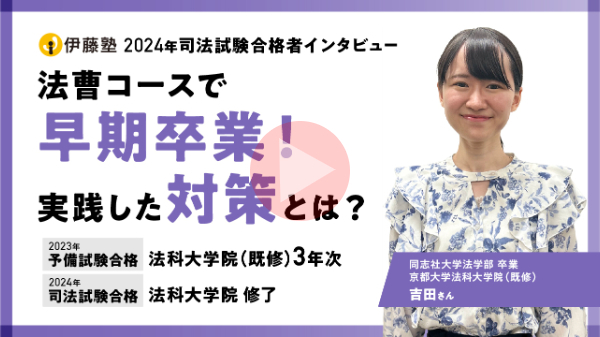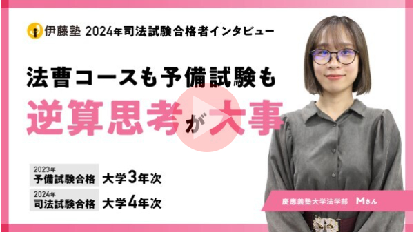 伊藤塾は一番選ばれている受験指導校なので、司法試験が相対的な試験であることを考えれば、一番良い選択肢なのではと思います。学習仲間や講師など、たくさんの人に支えられて合格できました。