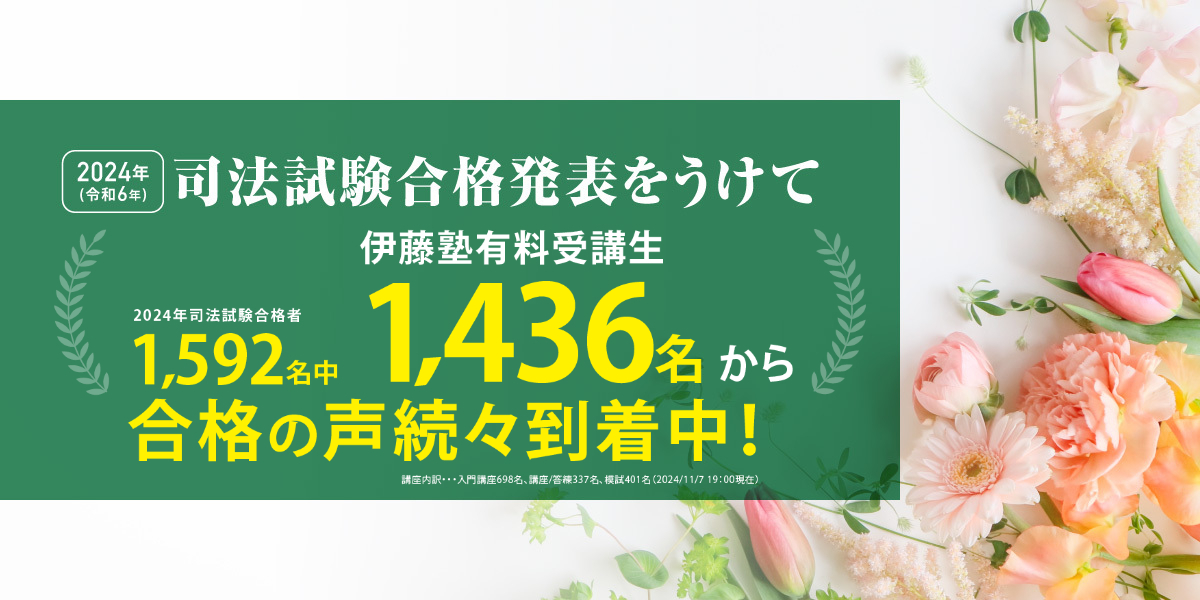 入塾前は独学や自作の工夫を重視していた私でしたが、伊藤塾の教材や講義は常に正しい方向へ向かっているという安心感を与えてくれました。働きながらの学習は、途中で不安になることも多いと思います。しかし伊藤塾を信じて一歩一歩積み重ねれば、必ず合格に近づけます。