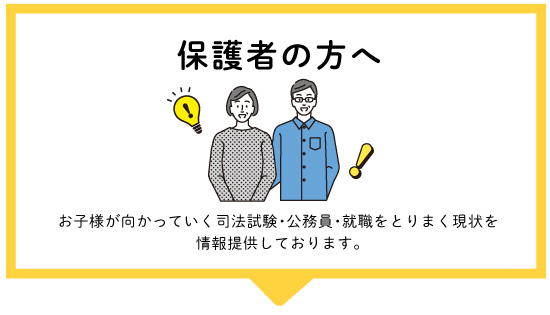 伊藤塾の学習方針はもちろん、お子様が向かっていく司法試験・公務員・就職をとりまく現状を情報提供しております。