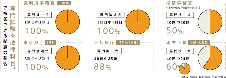 国家総合職試験や裁判所職員、東京都などには、法科大学院修了が活きる試験区分があります。司法試験を目指して学んでおくことで、どのタイミングでも、また大きな負担なく公務員へシフトチェンジできるので、将来の働き方をじっくりと考える時間ができます。