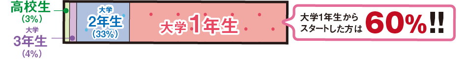 ここでは、大学1年生から学習スタートした合格者のリアルな声と様々なデータから、彼らの合格までの軌跡を紐解いてみましょう。