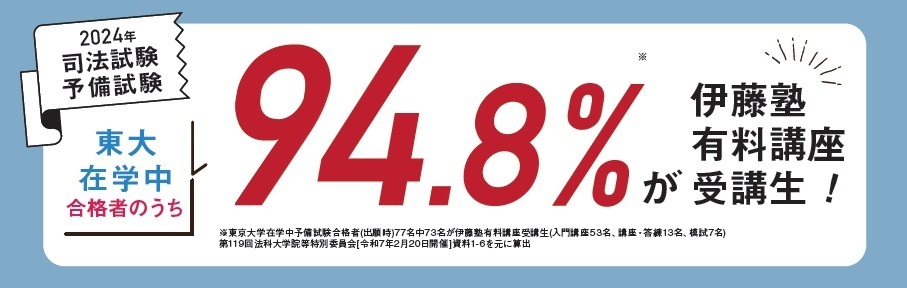 伊藤塾はそうした法律学習の原則をとらえ、それを可能にする学習を提供しています。その結果が合格実績に現れていますし、その素養を有する東大生においてはそれがより顕著になっています。