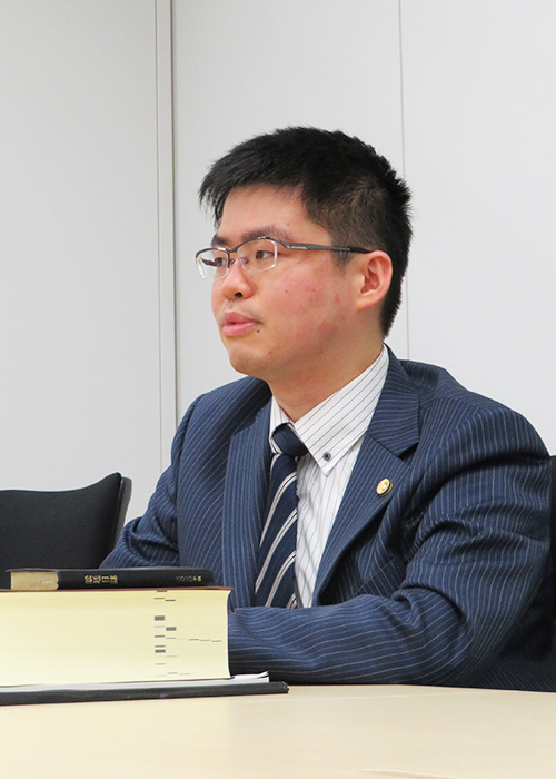 私が在籍する虎門中央法律事務所は、いわゆる企業法務を広く担当している事務所です。特定の業界の案件ばかり受けているというわけではなく、メーカーや金融機関など、多様な依頼者(お客様)と仕事ができる事務所です。また、日本国内の案件を取り扱っているのみならず、中国の法律事務所と、外国法共同事業という形で、タッグを組んで業務に当たっています。当事務所には、普段から中国の弁護士が常駐していて、よく一緒に仕事をしたりしています。中国の依頼者もたくさんいますし、仕事もよく来ますね。会社のみならず、個人の依頼者もいらっしゃいますが、会社や知人の紹介でいらっしゃるケースが多いです。