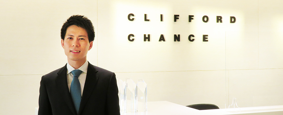 私はクリフォードチャンス法律事務所で弁護士としてのキャリアをスタートし、現在5年目になります。現在はアジア、ヨーロッパなど世界各地の投資家や銀行、事業者が携わるファイナンスの案件を担当することが多く、特に担当することが多いのはプロジェクトファイナンスです。例えば、海外の事業者の方が日本の再生可能エネルギー事業に投資する案件などを担当し、契約の交渉をしています。また、日本や海外の金融規制について、クライアントの方にアドバイスを提供する仕事もしています。