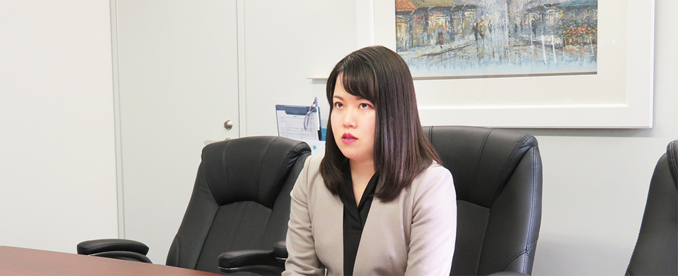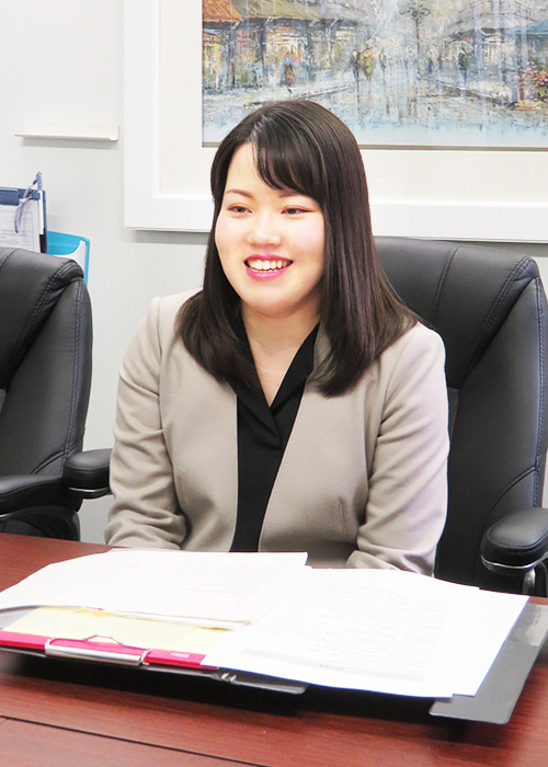 私個人としては、一般民事が中心でして、今年3年目になるのですが、今のところ特定の分野に注力しているというよりは、様々な分野の経験を積みたいと考えておりますので、特にこの分野に限定してということはありません。そういった中で、比較的多いのは事務所では女性弁護士が私を含め3名なのですが、私が中堅にあたるので、例えば「女性弁護士希望」というお客様がいらっしゃる時は私が担当することが多いです。男女関係のトラブルですとか、離婚とかそのような問い合わせは私の名前宛に問い合わせがくることが比較的多いかなと思います。