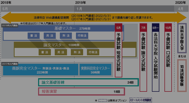 ※2018年開講の呉・基礎本クラス 特修コース(1年カリキュラム)は、改正民法を前提とした出題がなされる2019年法科大学院入試にも完全対応しています。
