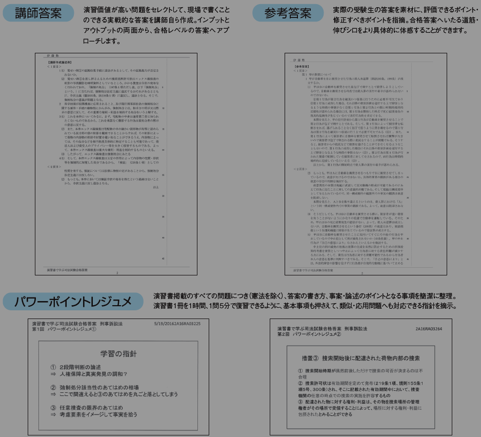 自力で演習書を読むだけでは把握しづらい「事案のポイント」「論述のポイント」を指摘。手元の演習書が、効率的な繰り返し学習の素材へと進化。