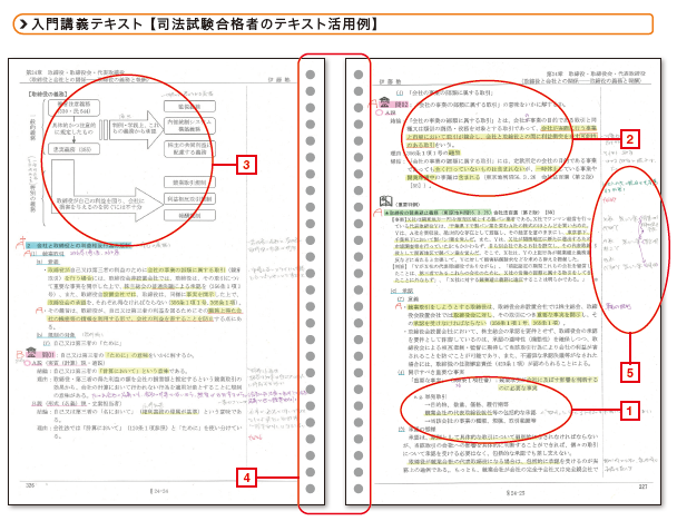 取り外し、差し込みが自由にできるので、他の講義で使用したテキストから抜き取った重要部分や、自分で作成したノートなどを綴じ込むことが可能です。法律の学習において最も重要な《情報の一元化》のプラットフォームとなります。