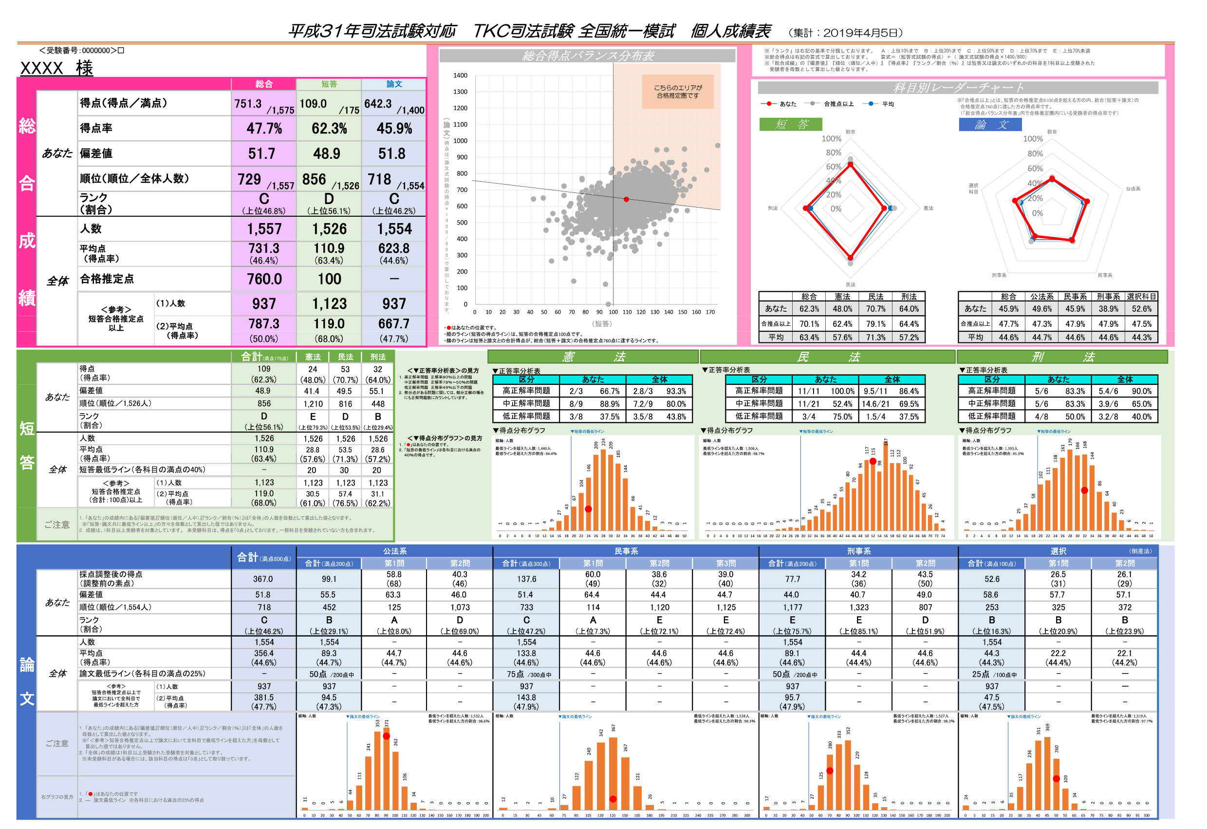 受験生目線から、個人の成績データ、全体の中での位置が、より詳細に、わかりやすく、見やすいレイアウトで本試験へ向けた最後の分析を支えます。