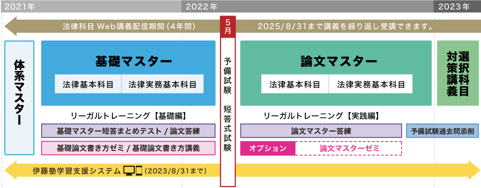 司法試験までを視野に、予備試験や難関法科大学院入試の合格を目指す、これまで多くの合格者を輩出してきた、伊藤塾の代表的なコースです。