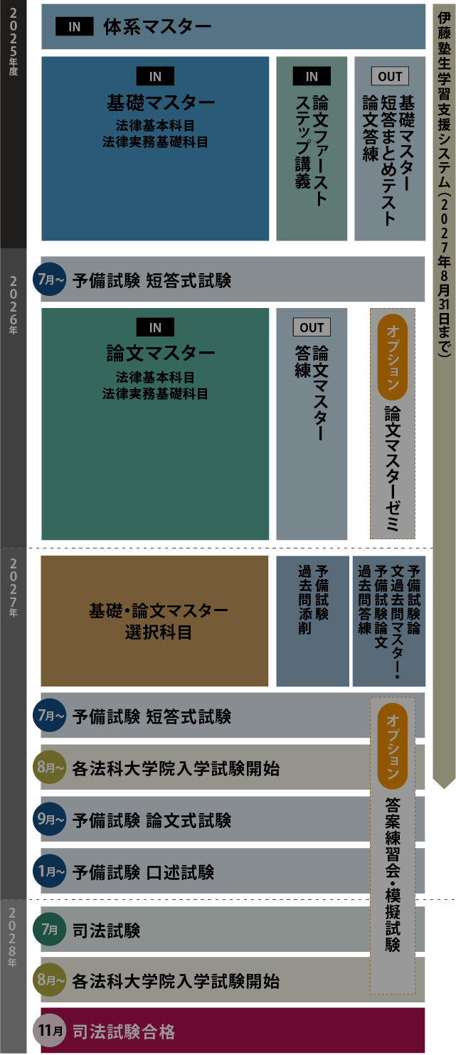 《プラン例3》法曹コースでの成績を上げるため、大学の予習として基礎マスターを活用すべく、講義順を自由に変えたい方