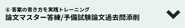 論文マスターで本試験レベルのトレーニングを行う前に、論文の基礎の型を身に付ける、いわば基礎マスターと論文マスターの架け橋となる講座です。