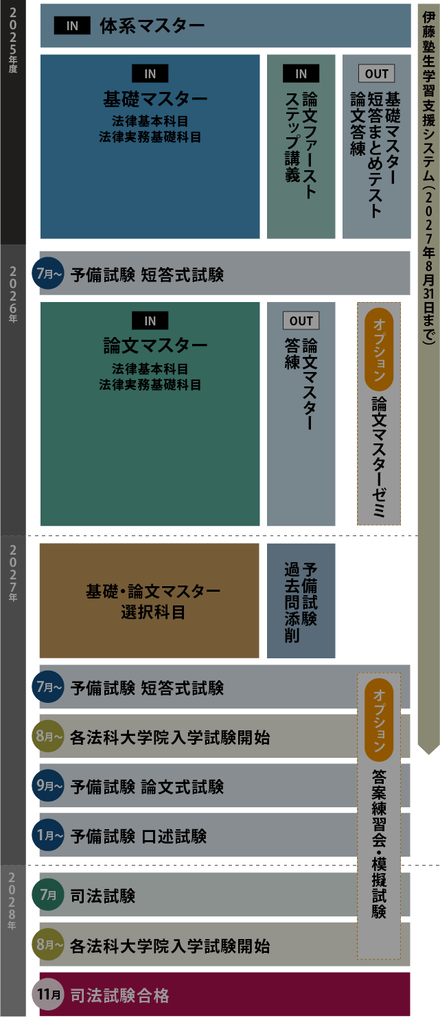 《プラン例3》法曹コースでの成績を上げるため、大学の予習として基礎マスターを活用すべく、講義順を自由に変えたい方