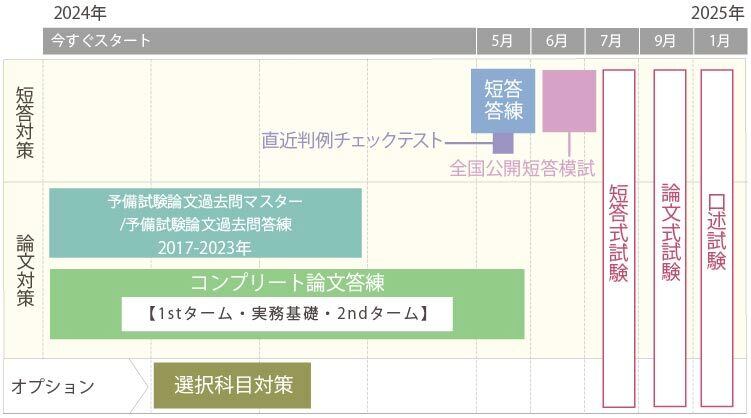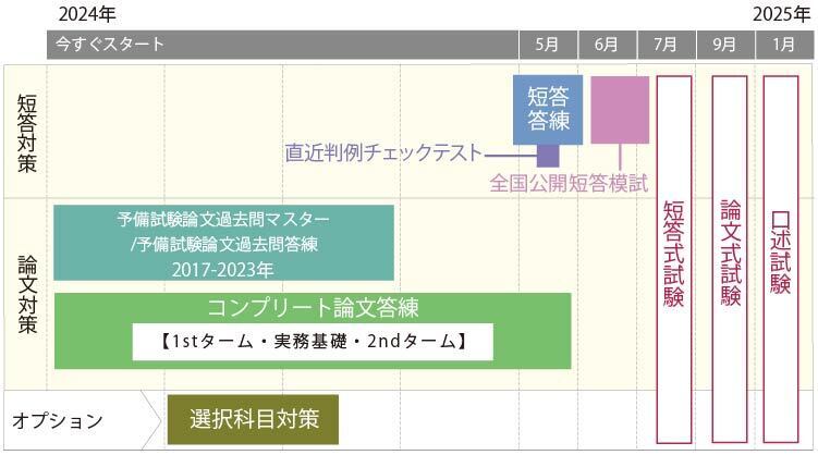 「先取り 論文直前答練」(フルパックのカリキュラムです。※選択科目は含みません。)