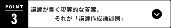「点数になるポイントはあえて厚く、そうでなければあえて書かない」、そんなメリハリのある、けれど合格できる実践的な答案を体感してください。