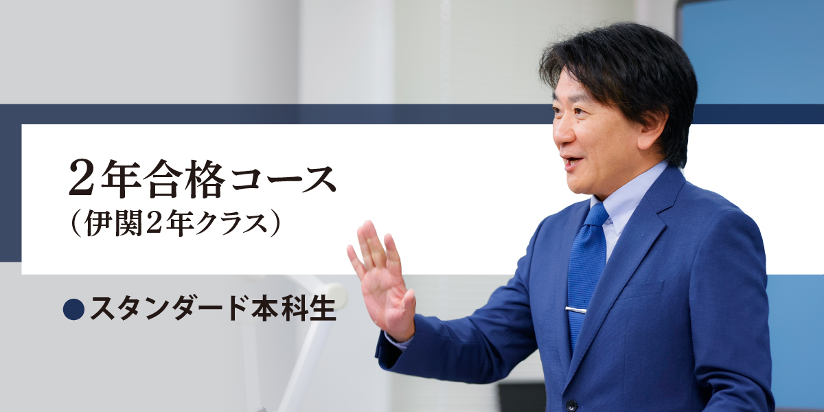 1年合格カリキュラムを生かしながら、学習時間の確保が難しい方や、基礎からじっくり力を養いたい方のために、新たに「2年合格コース」を開設しました。1年目に基礎を徹底的に固め、2年目で論文力と実戦対応力を鍛えることで、必要最小限の知識で合格レベルへ到達できるよう設計されています。多忙な仕事や学業との両立を図りながら、無理なく合格を目指せる現実的な選択肢として、多様な受験生を支えます。伊関講師がこれまで培ってきた“最短合格の思考法”を、2年の時間軸で無理なく身につけることが可能です。