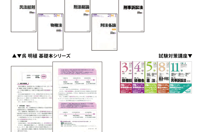 「呉・基礎本クラス」では、呉講師が書き下ろした「呉明植基礎本シリーズ」(弘文堂)と受験界で