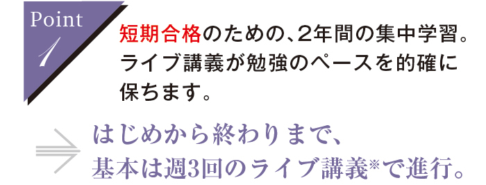 ライブ講義への出席が強制の契機となり、短期合格に必要な学習ペースを的確に保つことができます。