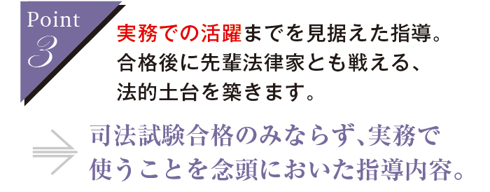 受験指導についても、本田講師は司法試験合格直後から積極的に取り組み、基礎への徹底したこだわりと実践的な合格答案作成指導は、多くの受講生の最終合格に寄与してくれています。