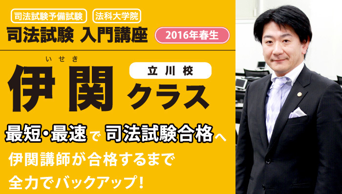 「試験問題分析力」に加え、合格まで導く指導力のある伊関講師の講義は、司法試験合格に直結したものとなっています。