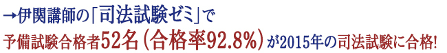 伊関講師が担当した「司法試験ゼミ」では、2014年は57名、2013年は48名の予備試験合格者が司法試験に合格しています。