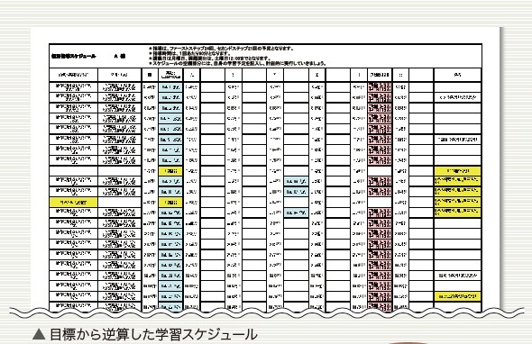 三者面談で指導を担当する講師・スタッフと相談しながら、あなたに合った学習プランを作成。 合格までのスケジュールを具体的に提示します。