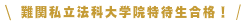 私立法科大学院入試にあたって、所属ゼミで指導してくださった教授、アドバイスいただいた先輩方、手を取り合って一緒に入試に臨んだ同期、そして何よりも何から何まで応援してくれた家族に感謝したいと思います。