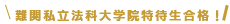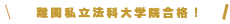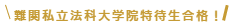 合格校:慶應義塾大学法科大学院(既修・早期卒業)早稲田大学法科大学院(未修・早期卒業)中央大学法科大学院(既修・早期卒業・全額免除)