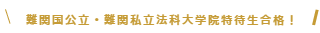 合格校:京都大学法科大学院(既修・飛び入学) 神戸大学法科大学院(既修・飛び入学) 同志社大学法科大学院(既修・早期卒業・全額免除)