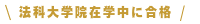 中央大学法学部4 年在学中 ◆ 合 格 校 / 慶應義塾大学法科大学院(既修)、中央大学法科大学院(既修・全額免除学生)