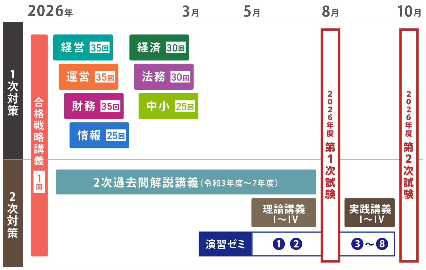 ・実施時期:2026年5月~2026年10月(1次試験前→2回/1次試験後→6回実施)