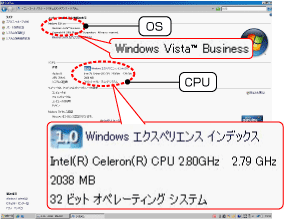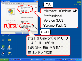 ※画像は一例です。OSやCPUなどに記載されている文字はお使いのパソコンによって異なります。