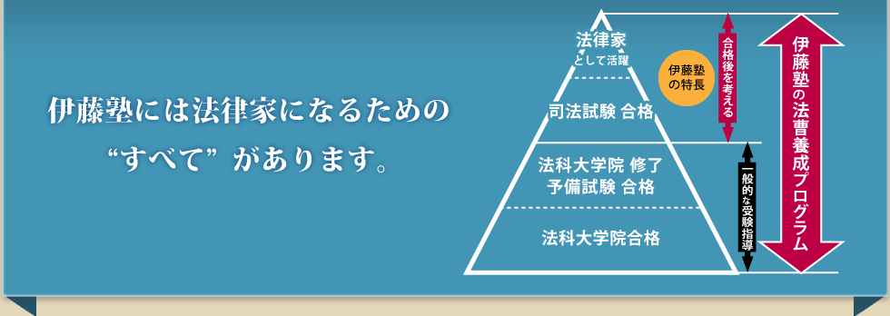 昨今、弁護士の就職難が取り沙汰されています。こうした時代にあっては、合格後の明確なビジョンを持っていることが非常に重要になります。試験に合格するということだけを目的に学習してきた受験生は、「合格後の活躍」を目指していないため、就職活動においてもなぜ当該事務所を志望するのか、入所後何をしたいのかを語ることができません。結果として、どこにも就職が決まらない、という事態が生じてしまうのです。 この点、伊藤塾では、法律家の役割と仕事を受験生の皆さんとともに学び考える多くの機会を設けています。
