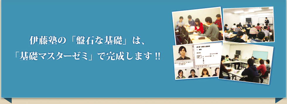 講座でインプットした知識を、法的思考のトレーニングを重視した基礎マスターゼミでブラッシュアップすることで、最短・最速での司法試験合格を可能にする「盤石な基礎」が完成します。